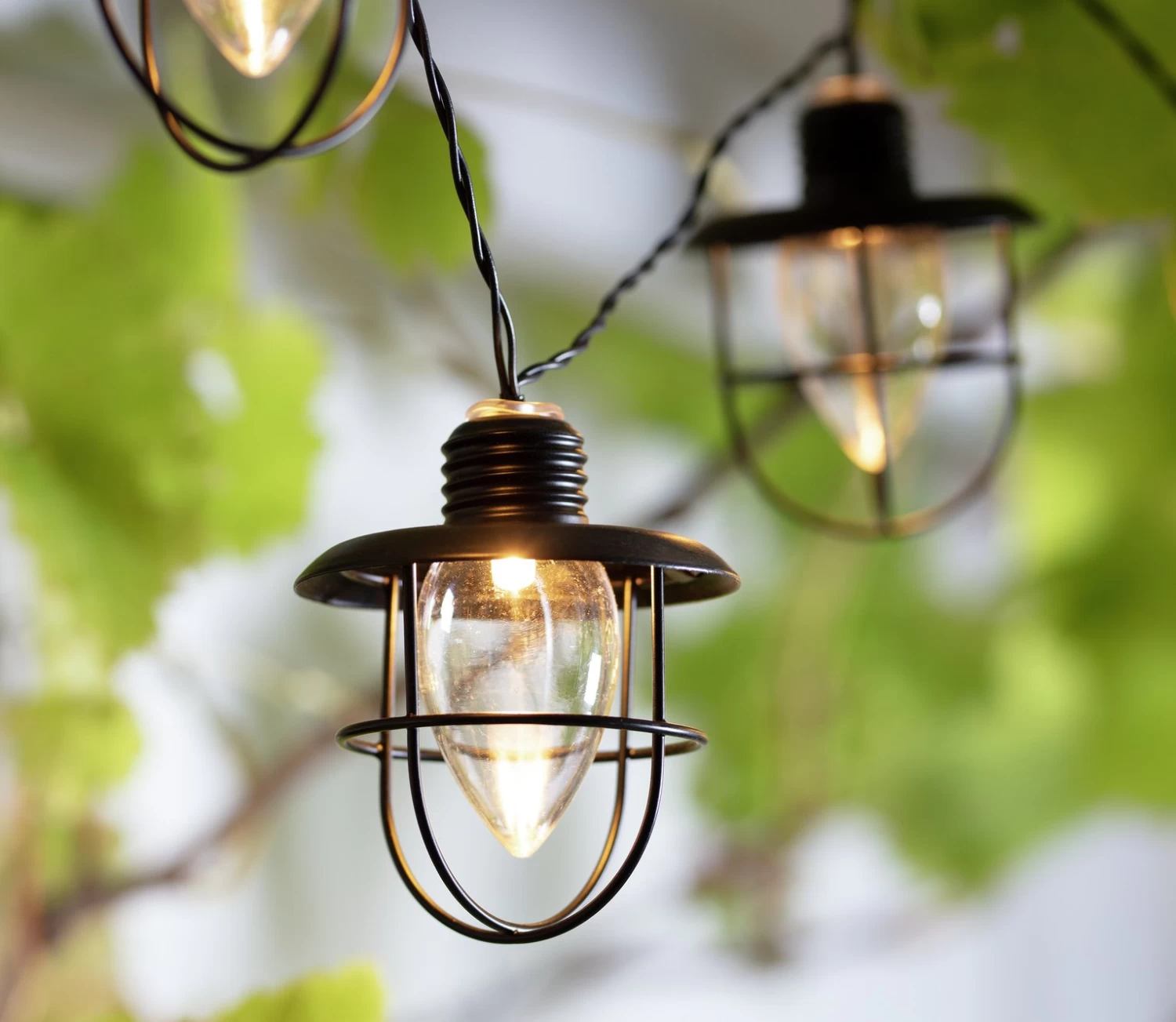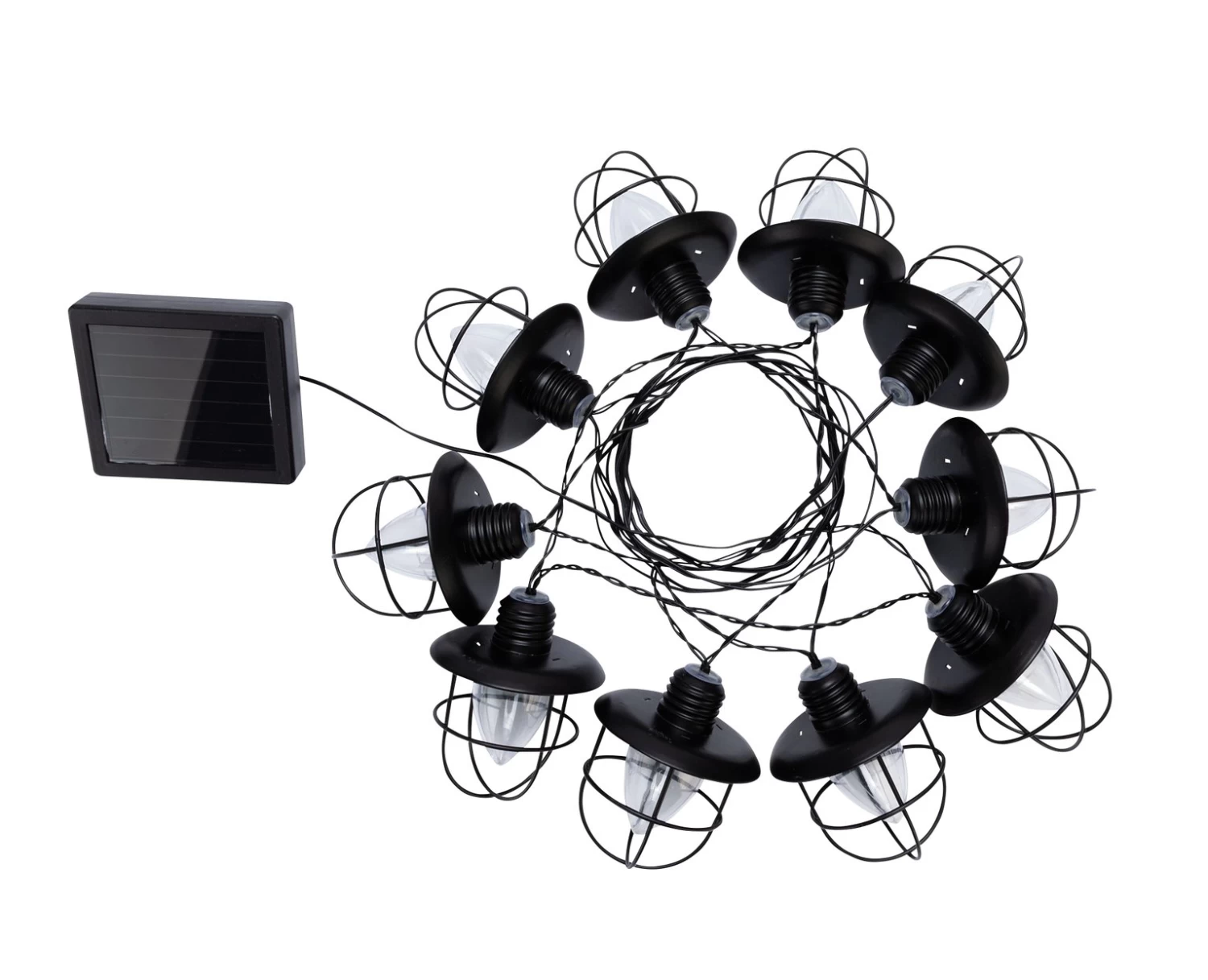 Light up the party with these striking industrial chic solar lights. They're so on trend. 10 tulip shaped bulbs are each encased in a vintage style cage. Festoon them in the foliage you're your outdoor furniture or string them along the garden fence. Get creative. Just make sure the solar panels can soak up the sun during the day, then they'll bathe your guests in a soft glow all evening. 100% environmentally friendly, no wiring required. With 7 hours of light out of a fully charged battery, you can party on into the night.