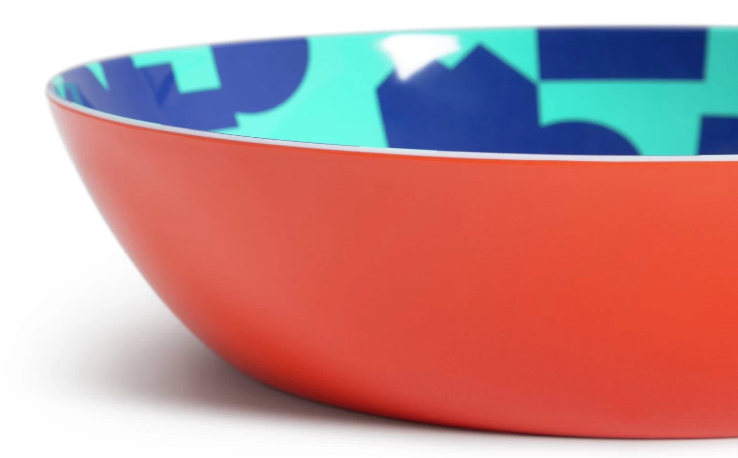 Set of 2 assorted color melamine serve bowls. Each bowl has a vibrant pattern and exterior. Suitable for indoor/outdoor use. BPA Free.