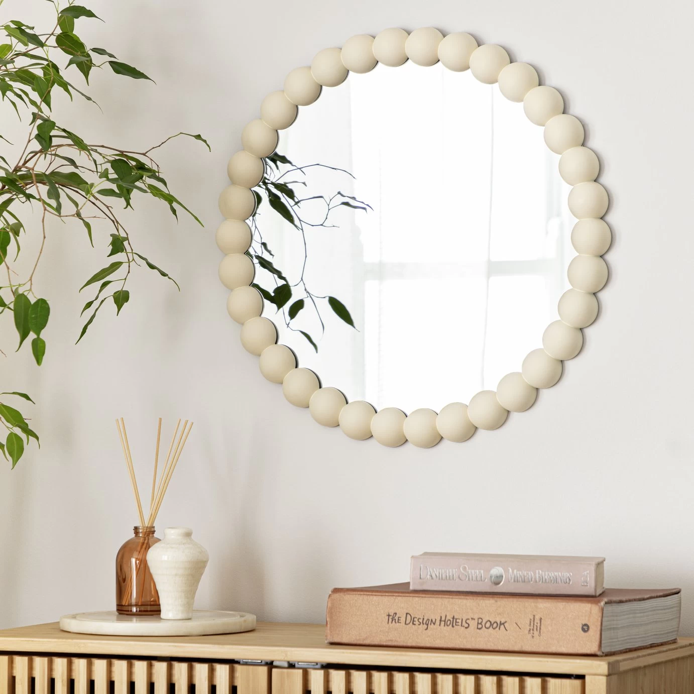 Bring a blast of coastal cool to a wall with this white framed mirror. We're reminded of sun-bleached polished pebbles on the beach. A light, bright accent piece with a laid-back vibe.