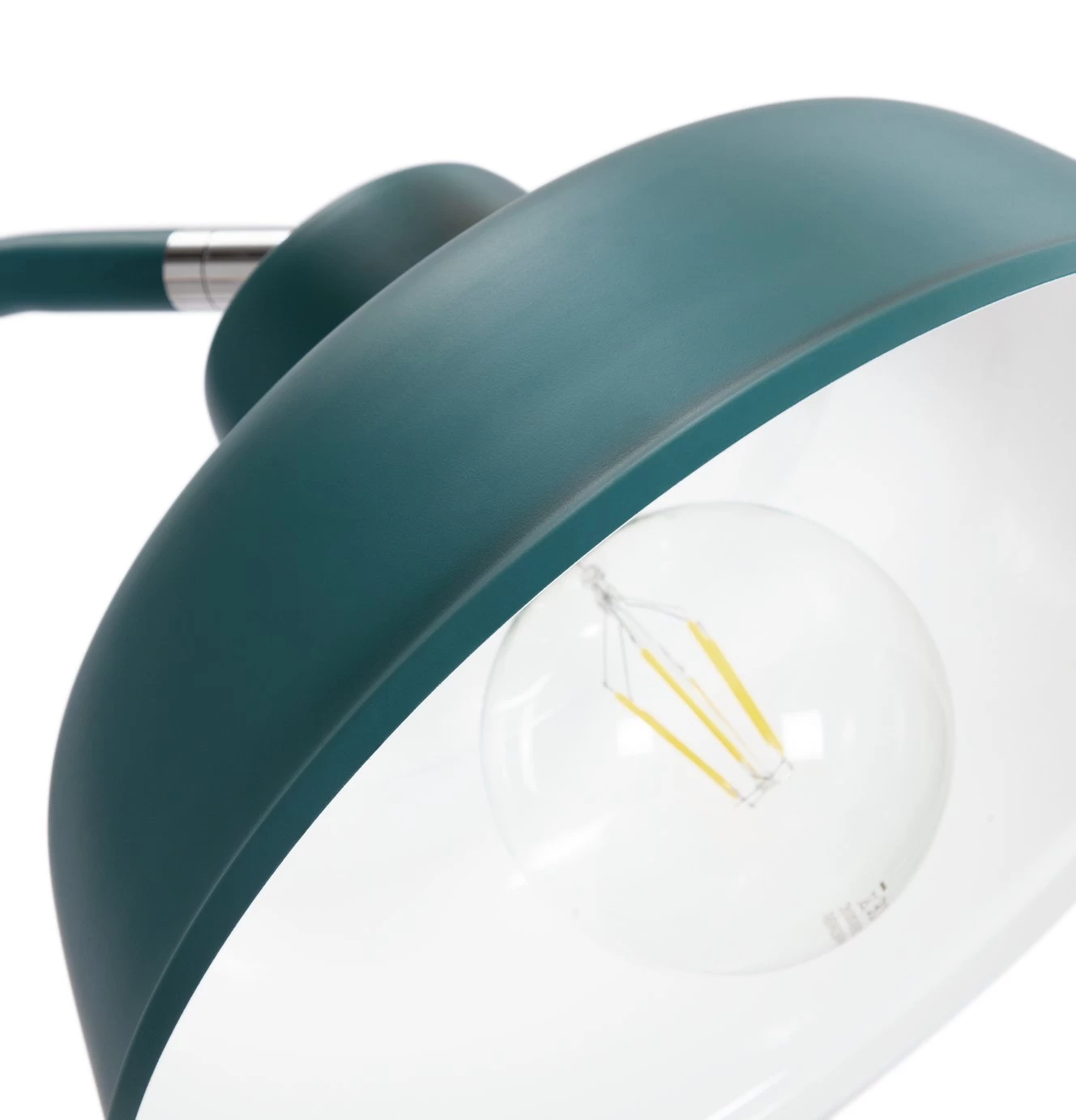 Industrial chic with a pop of colour to keep you from getting the blues. Our Benson Blue Floor Lamp has all the right design cues: slender body, metallic, exposed bulb, while the wide brim casts light downward and out so there are no small pools of light. Perfect behind a reading chair, next to the sofa or a big potted plant to cast light and drama across the room. And it's teal colour means it even looks fab when the lights are off.