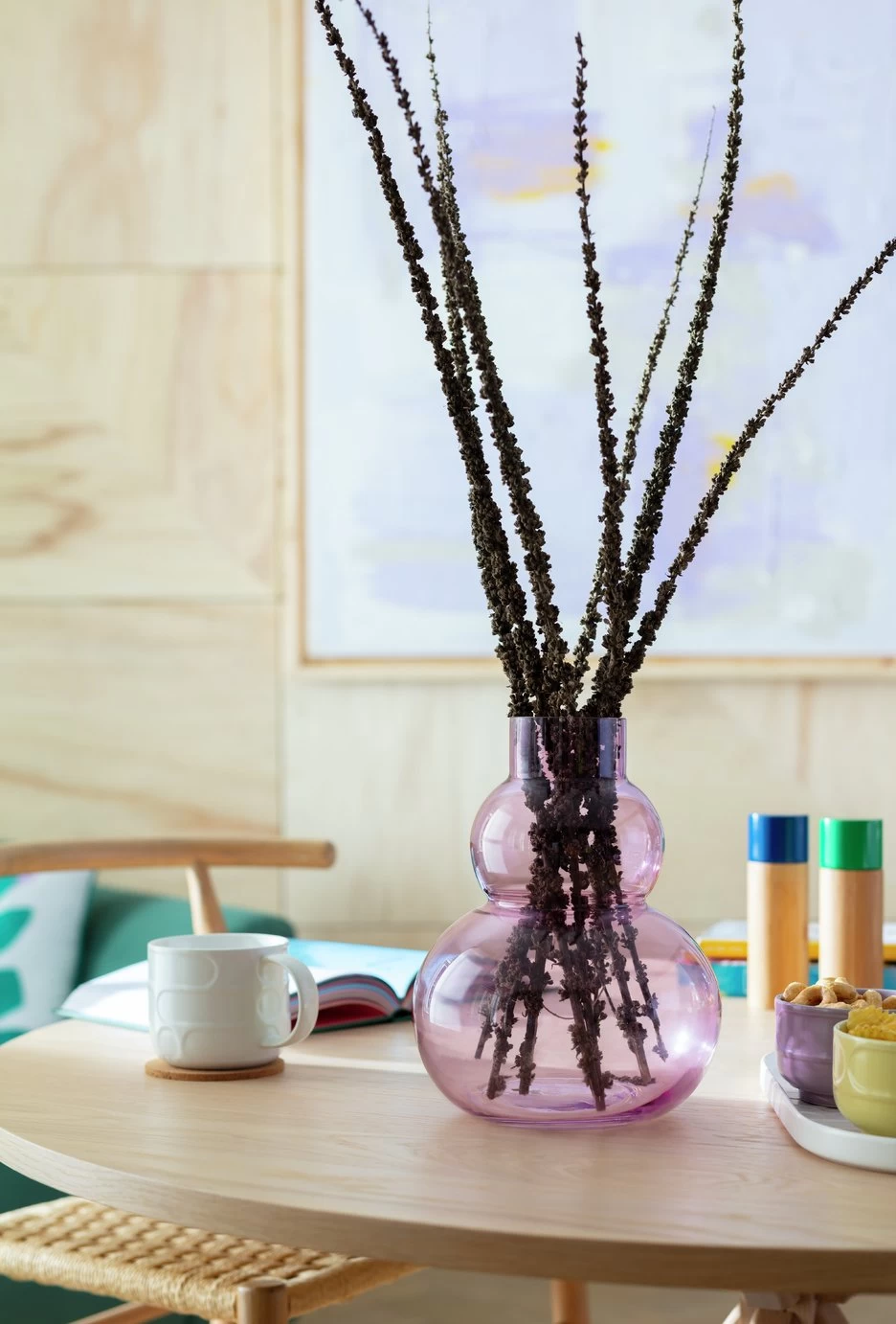 Our lilac glass bubble vase is ideal for bringing a bit of fun to your floral creations. A curvaceous modern studio piece.
