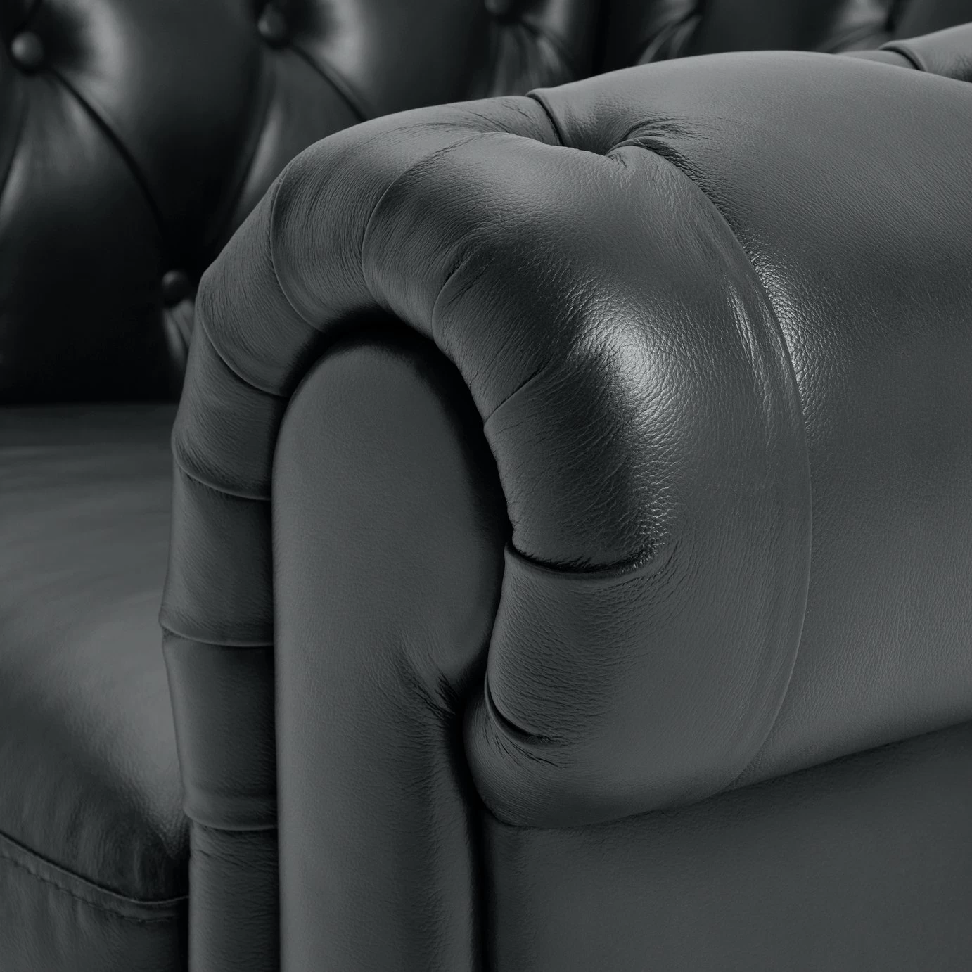 An iconic piece, the impressive Chesterfield will add a whole new level of elegance to your lounge or office. It will make a statement on its own or as part of a full suite. Comfort is assured with its firm foam filled seat cushions, so it's not only full of character but provides a great place to relax.