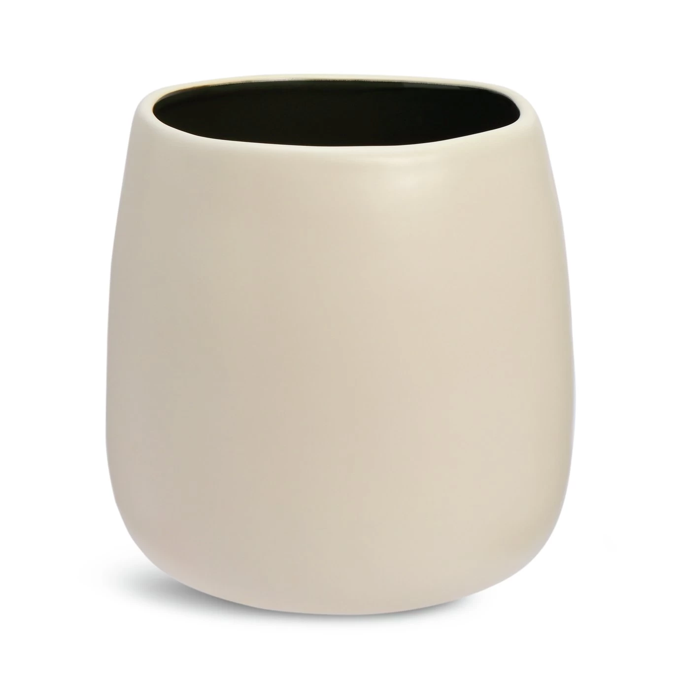 Our curvy white ceramic plant pot with its contrasting dark inner has a hint of the Mediterranean about it. Fill with lush greenery, fresh or faux, and brighten up an outdoor or indoor space.