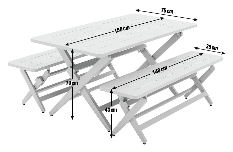 - Bench size H43, W35, D140cm.