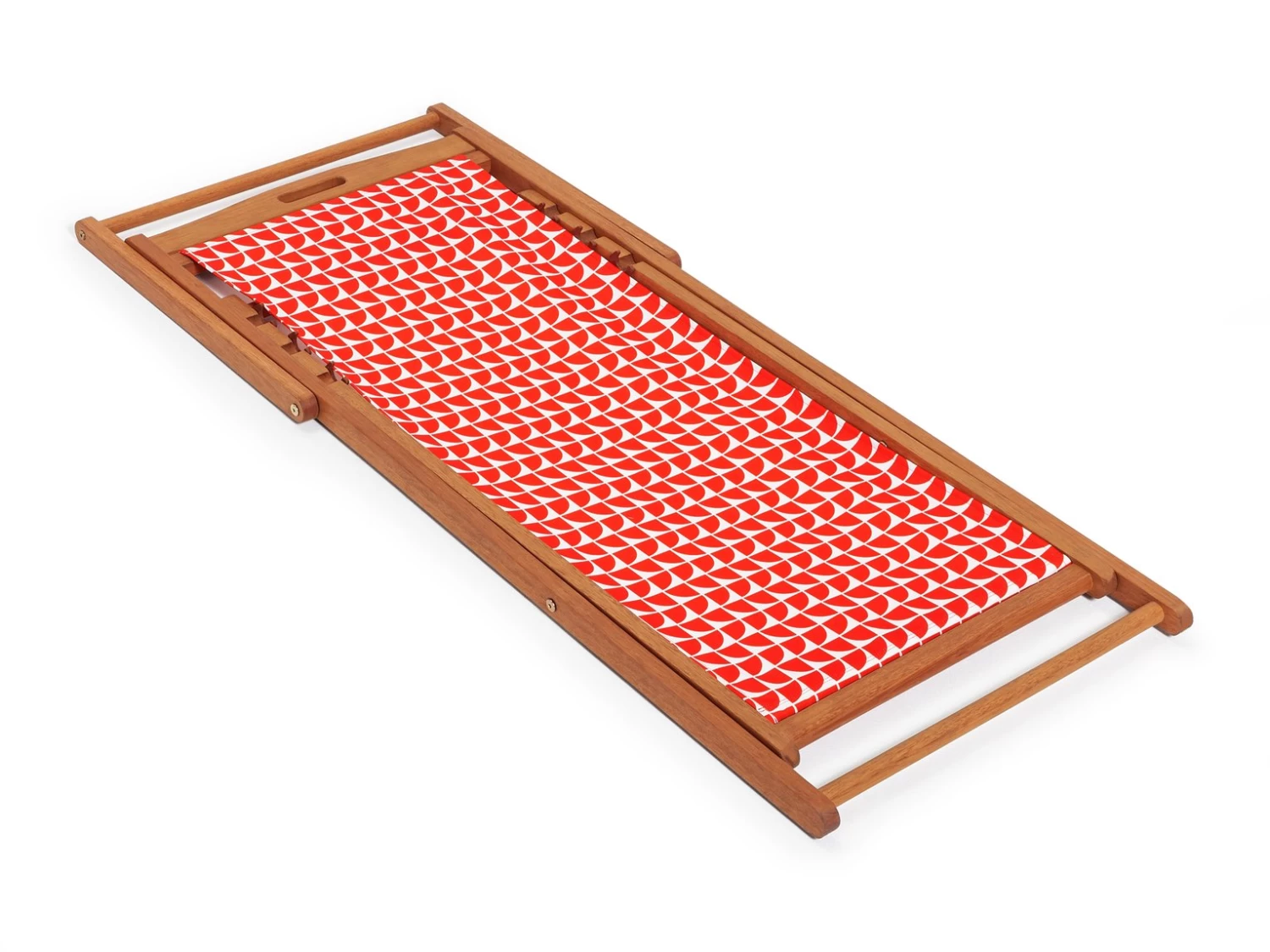 Grab your flip flops and towel. If you can't get to the beach, we bring the beach to you with this laid-back little number. It's 3 adjustable positions from upright to recline mean you can settle back and soak up the sun. Or sit up for an ice cream and a good read of your latest novel. An easy fold mechanism makes it easy to store or transport. Easy-to-store and space-saving. The natural solid wood frame is beautiful and weather resistant and complemented by our zesty Geo Orange fabric.