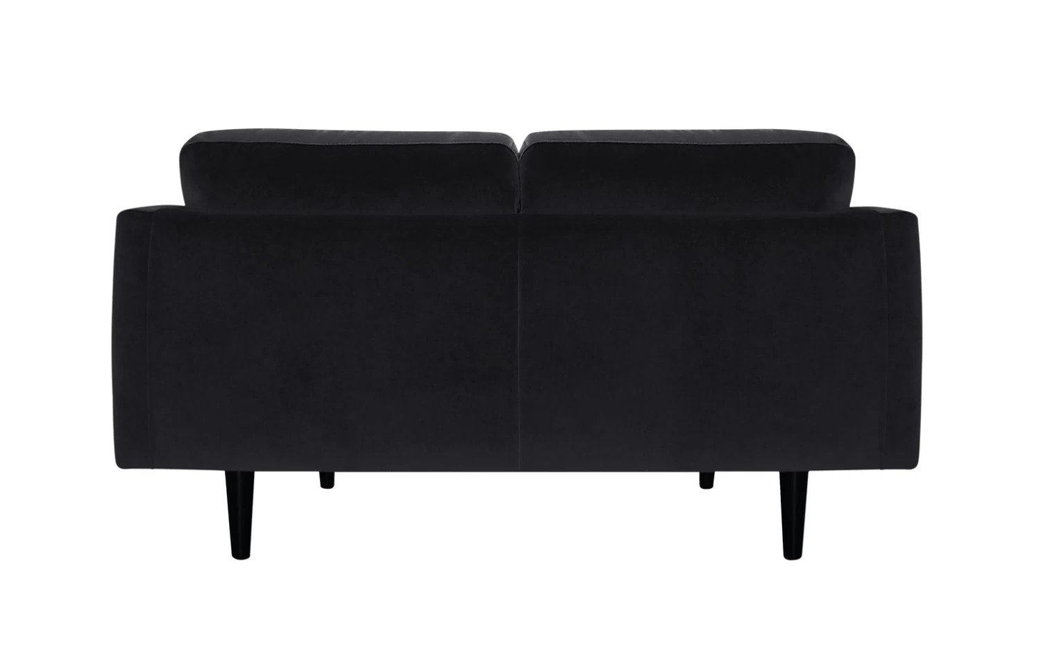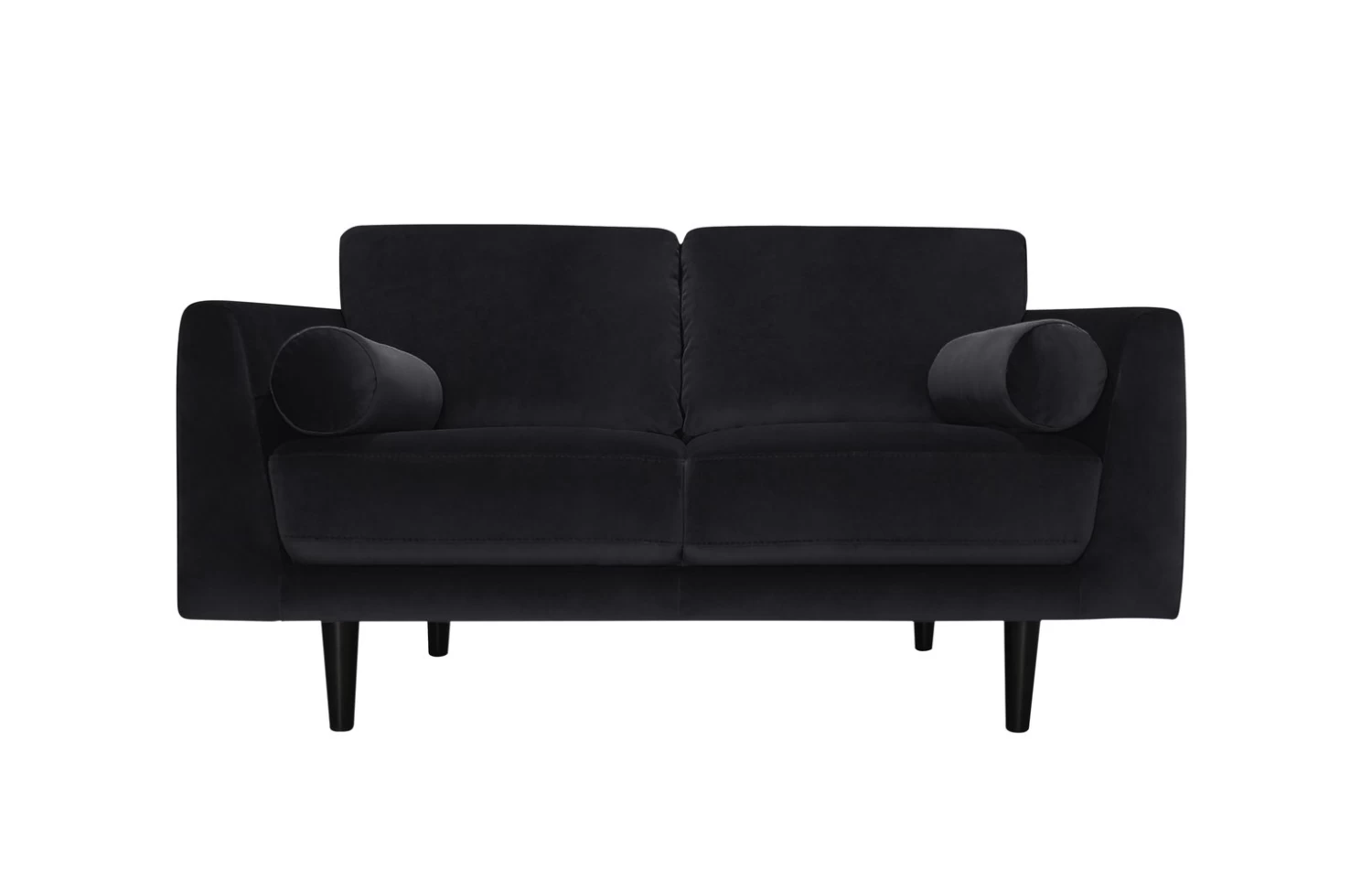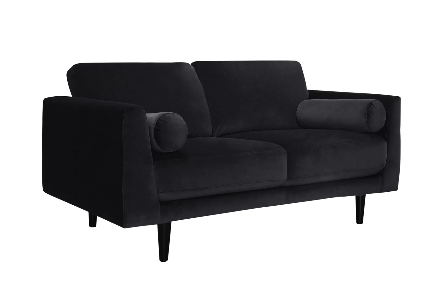 Cosy up with Jacob. Upholstered in a black velvet this mid-century modern 2-seater sofa is comfy and luxurious. Sink into the low, wide pocket sprung foam seat. Snuggle into the plump and squishy bolsters. And lean against the fibre-filled cushioned back rests. Now breathe. Relaxation achieved.