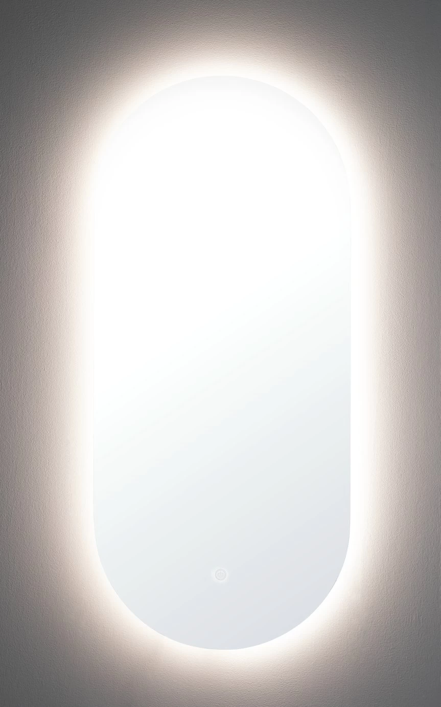 Lights, camera, action. Our glam oval LED mirror is a real star. Clever too. With a de-misting function, steamy bathroom mirrors will be a thing of the past. Ideal for getting ready right after your shower. The bright backlight makes shaving, applying makeup or performing a skincare routine so much easier. And when you're in the mood for a change, just switch from bright light to low light. You ready for your close up?