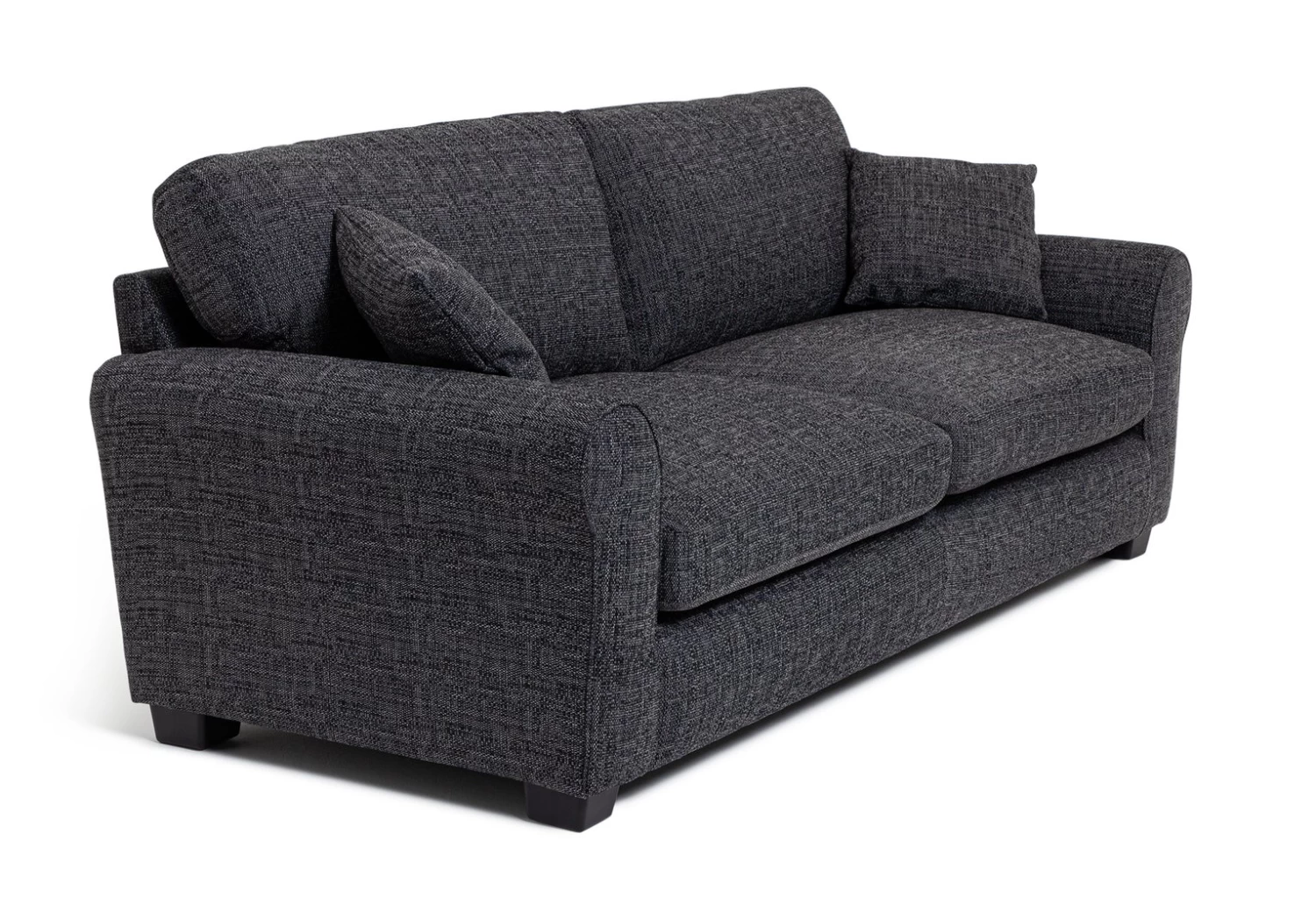 Room swoon. Soft cushions, plump arms and deep comfy seats. Our Lisbon's soft luxe foam filling is just waiting for you to sink into it. Curl up and get cosy to watch your favourite film. Designed for both comfort and looks and guaranteed to make your room feel like a home, it's an ingenious update on the classic scroll-arm sofa. With a solid internal hardwood frame and upholstered in a durable, soft woven fabric it is a stylish and timeless 4-seater. We love Lisbon.