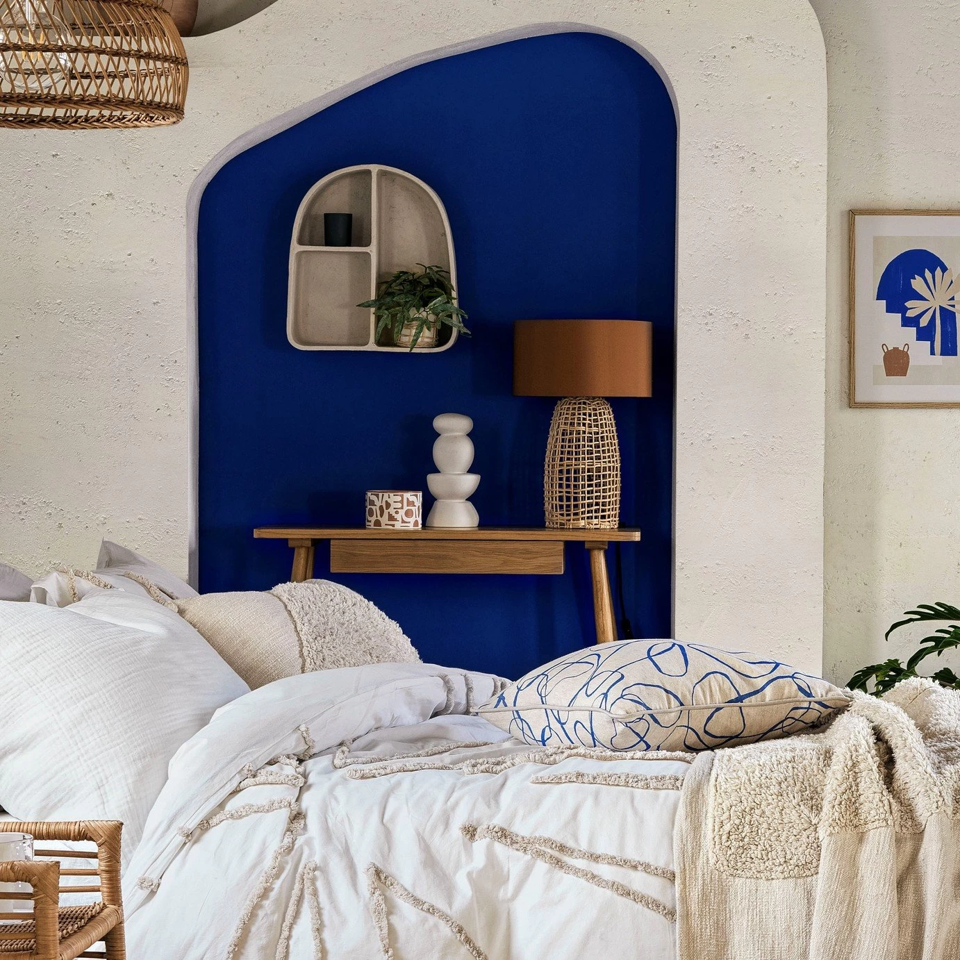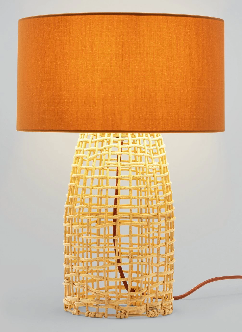 Radiant in rattan. Our natural woven Luiss lamp is a burst of boho style for your bedroom or lounge. The curved base brings a uniquely organic feel to the table. The drum shaped shade in rich sienna red softly filters light around the room. A matching fabric cord ties it all together. Flick the switch or use a dimmer to create a calm and cosy ambience. Bright and beautiful. Summer all year round? Yes please. Explore more modern, beach-inspired decor in our Mediterranean collection.