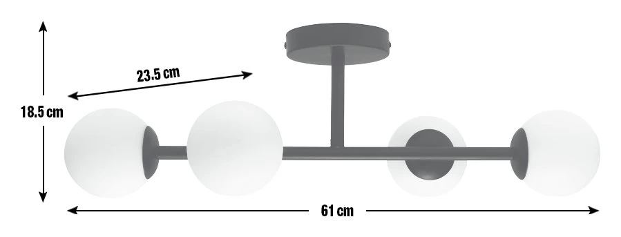 Our glass orb lighting feature is as at home in the living area as it is in the bathroom. Bringing a twist of modernity to a classic style. A bold matte black bar supports four opaque glass globes. And as it's flush-fitting, you don't need a high ceiling to create an impact.