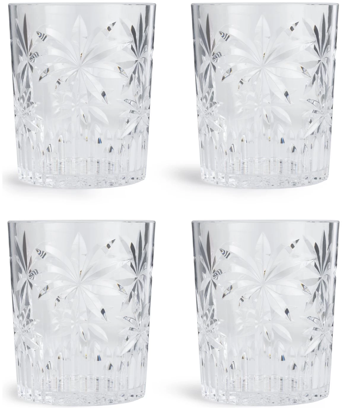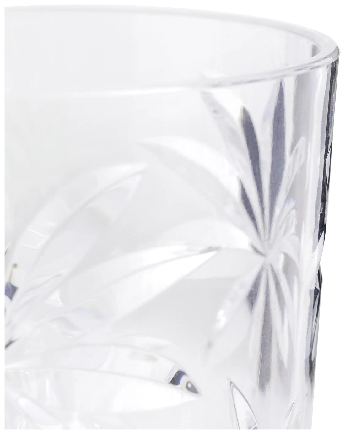 Enjoy the outdoors while sipping from one of these smart palm etched tumblers. And no oops moments to spoil the occasion. This set of 4 acrylic glasses don't mind a fall. Let's drink to that.