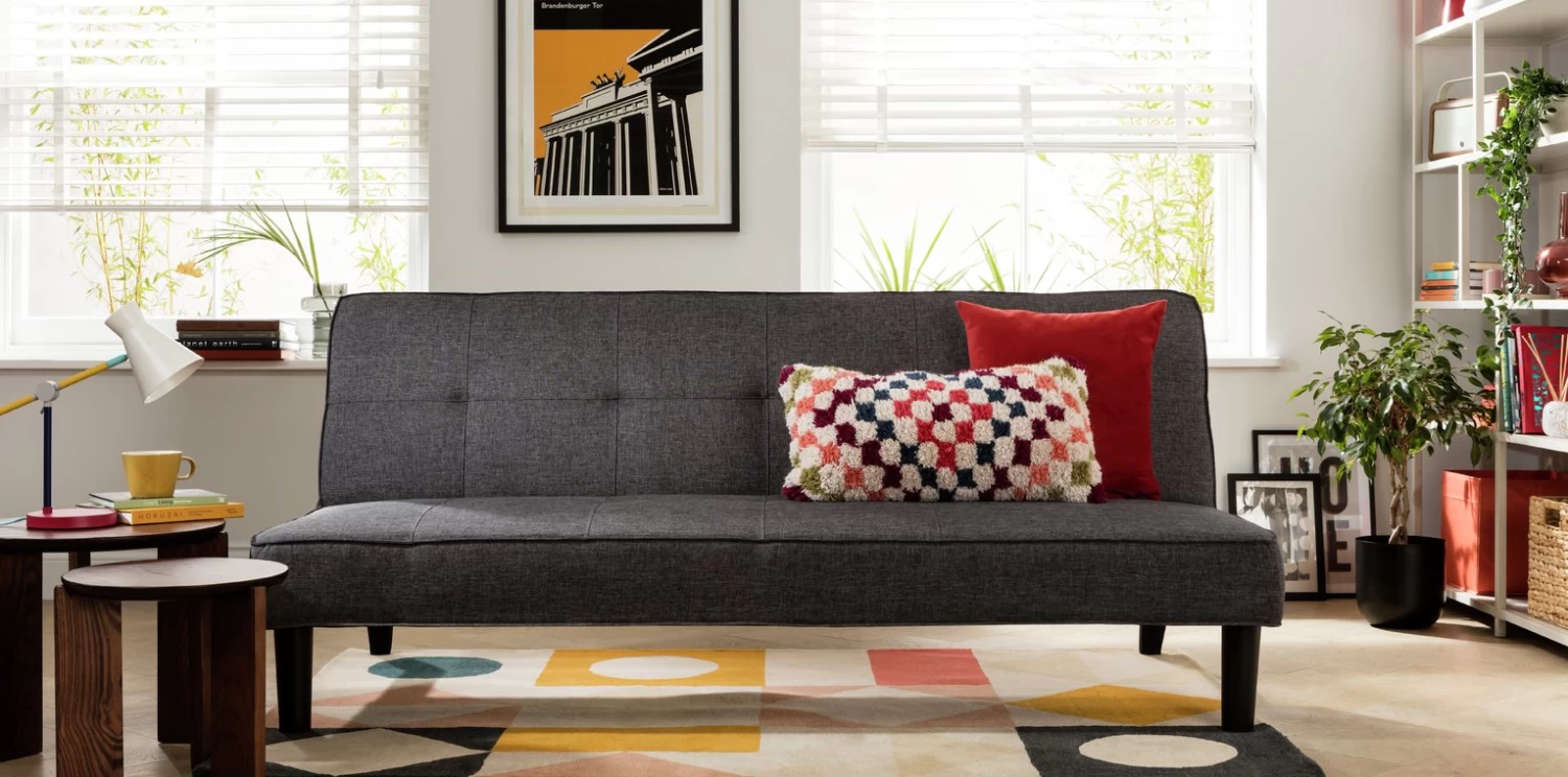 Spacious sofa. Soft sleep space. The Patsy sofa bed is the ideal solution when you have guests to stay. The sleek design, in a stylish charcoal fabric, is perfect for any modern home. Fold it out flat using the clic clac mechanism, and it transforms into a comfy single bed. With a striking stitching detail, Patsy is quite the looker. Go on, style up that spare room.