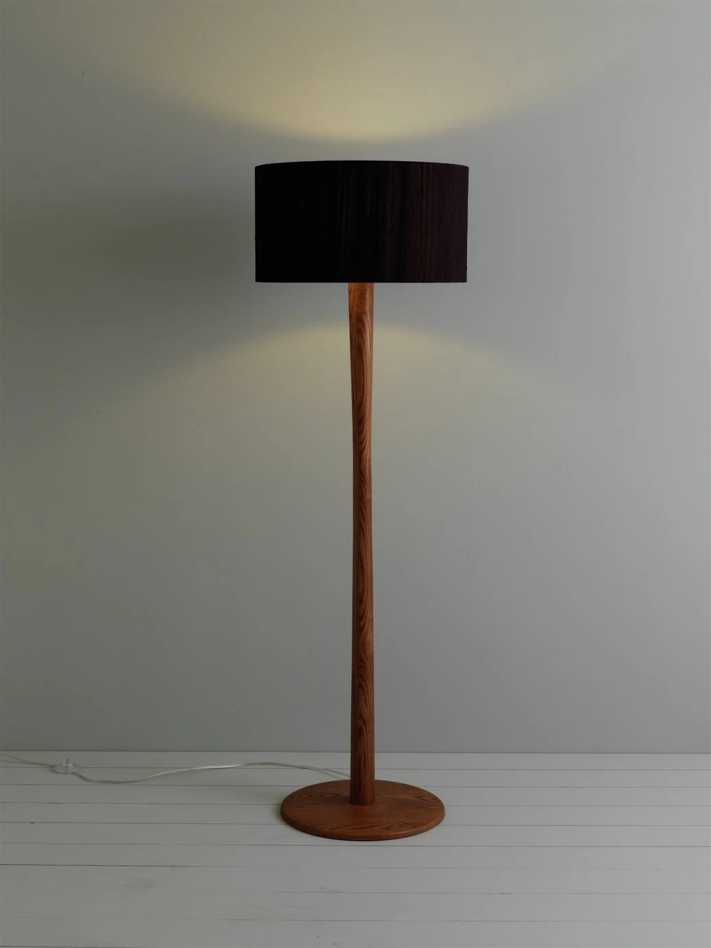 Illuminate your space with this contemporary pole floor lamp. Crafted from solid oak and stained to a dark walnut finish, this sleek frame is great for brightening up dark corners of your home. A welcome addition to any bedroom, hallway or living space, add a oversized shade in a vibrant pattern to give your decor a vintage feel.