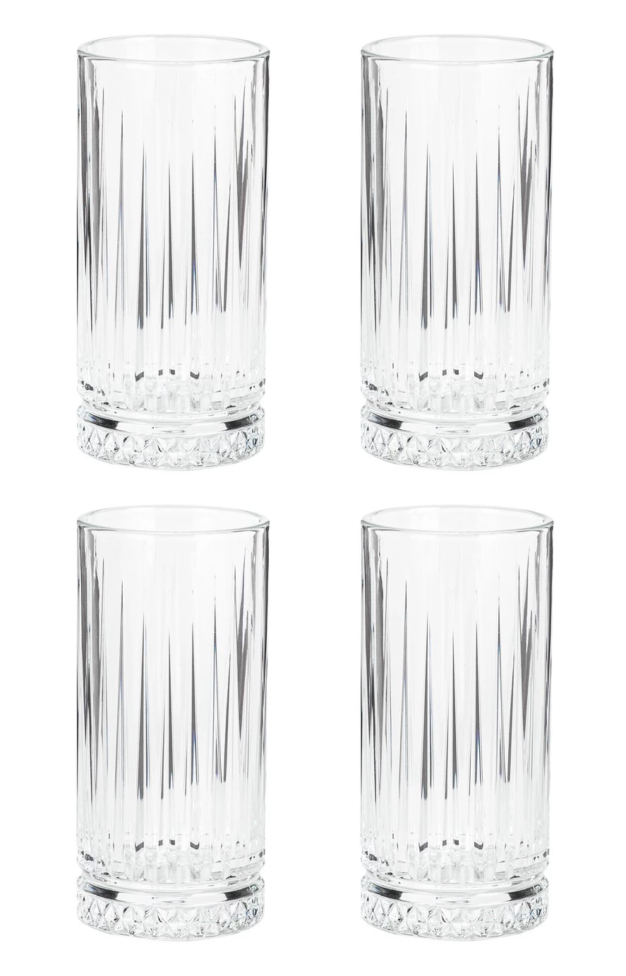Pour it tall and have a ball. These 4 Hi Ball glasses are a must have for your drinks cabinet. They're class in a glass and the height of retro chic. Perfect for pouring a long tall cocktail over ice. Or adding a splash of style to your mineral water, or even jazzing up your juice. The cut glass design is not only elegant it makes it easy to grip as well. Simple to keep sparkling clean, just pop in your dishwasher. Loving the vintage vibe? Take a look at the rest of our gorgeous glassware. Bottoms up!