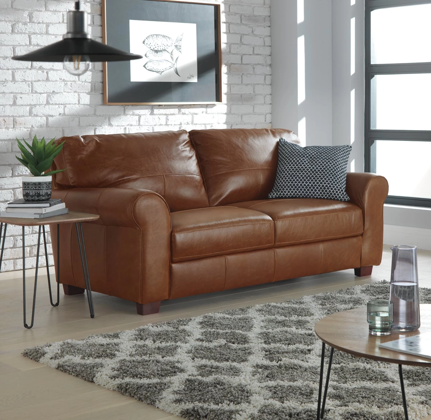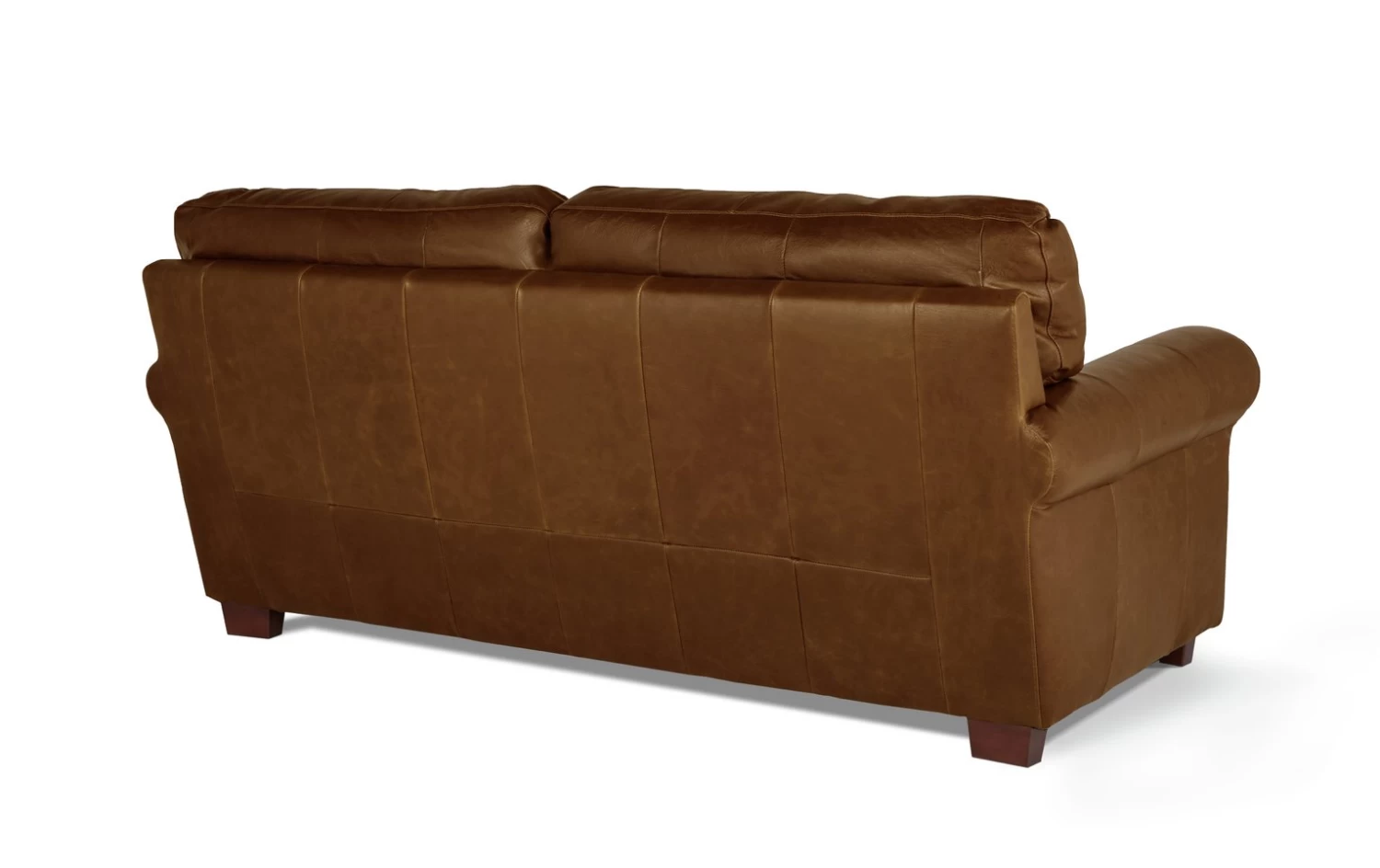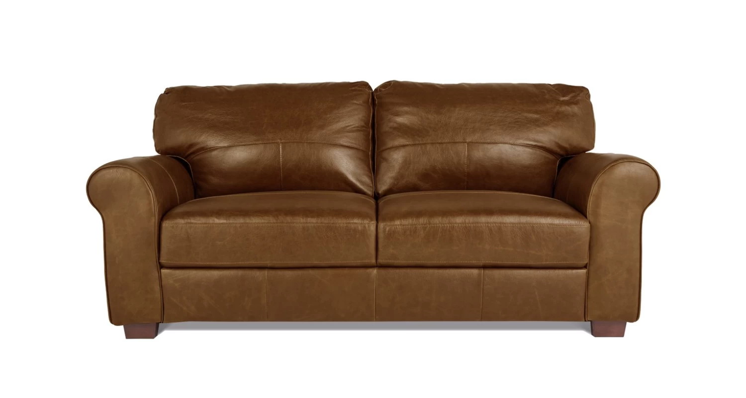 Strong and sophisticated form. The Habitat Salisbury is beautifully crafted using top quality Italian semi aniline leather. It has a subtle creasing, to give this 3-seater a timeless distressed finish. Its beautiful scroll arms offer a classical touch. We love the look of the wide wooden feet, that raise the sofa from the ground. A chic choice.