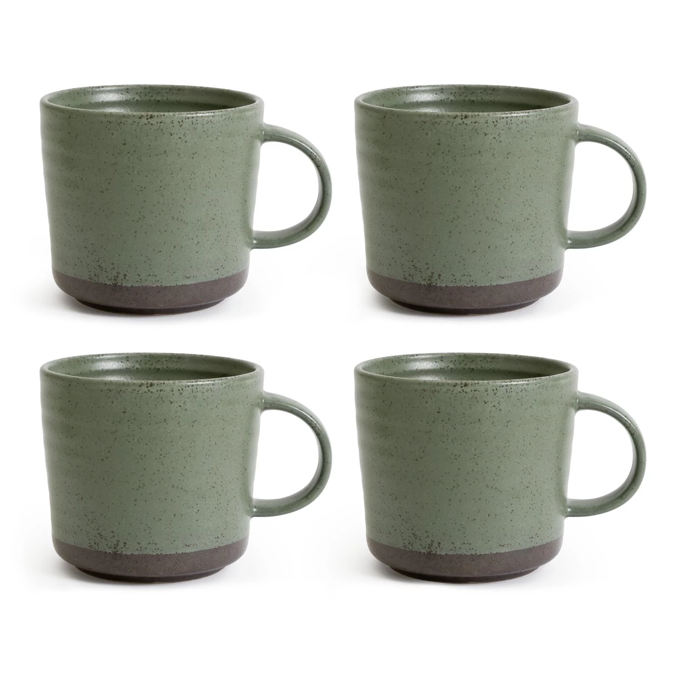 4 soothing cuppas coming right up. Our set of 4 sage mugs have a tactile yet subtle ripple texture. The contrasting dipped effect at the base adds to the calm modern design. In speckled stoneware, they're a stylish choice. And they're robust enough to stay looking good for years. That's a great start.